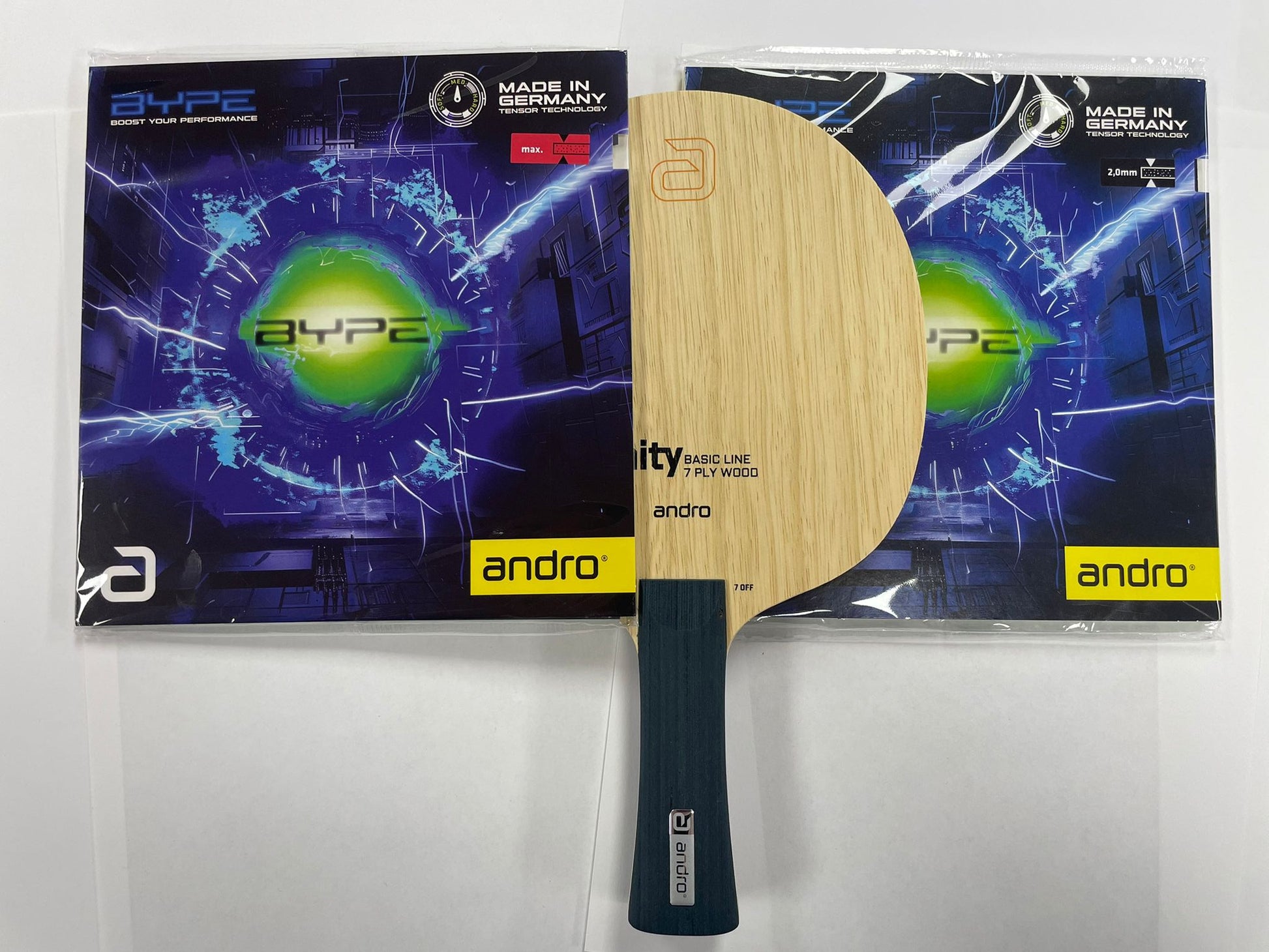 Auf Vor- und Rückhand ist der Bype von andro in 2,0mm und 1,8mm.
